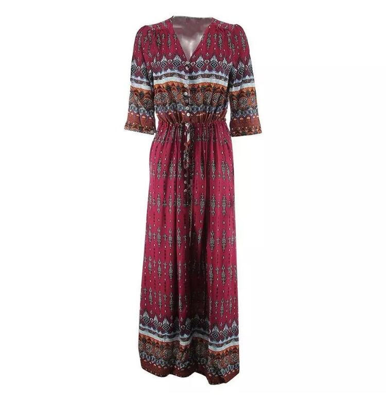 Import Fashion Bohemian Boho Hippie Vintage Native Gypsy Maxi Long Summer Beach Dress Skirt Party Evening Floral Sundress Mexican Ethnic Rompers Jumpsuit Off Shoulder Tops Vest Blouse Sleeveless