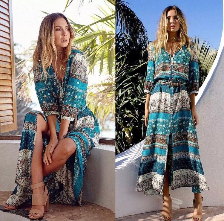 Import Fashion Bohemian Boho Hippie Vintage Native Gypsy Maxi Long Summer Beach Dress Skirt Party Evening Floral Sundress Mexican Ethnic Rompers Jumpsuit Off Shoulder Tops Vest Blouse Sleeveless