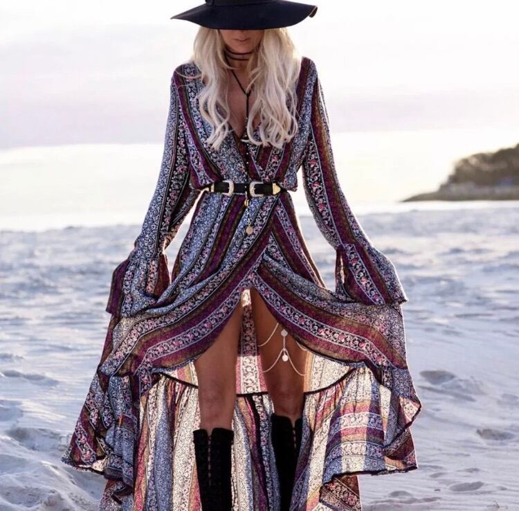 Import Fashion Bohemian Boho Hippie Vintage Native Maxi Long Beach Dress Skirt Party Evening Floral Sundress Mexican Ethnic